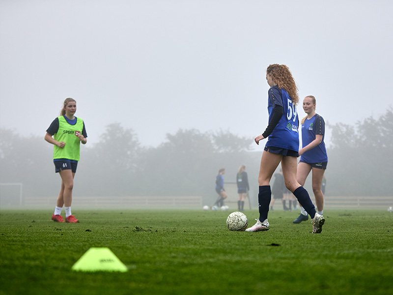 Det får du som pigefodboldspiller på Onsild Idrætsefterskole. Hvis du har lyst til at være en del af vores fodboldhold, kan du se frem til at træne hele året rundt.